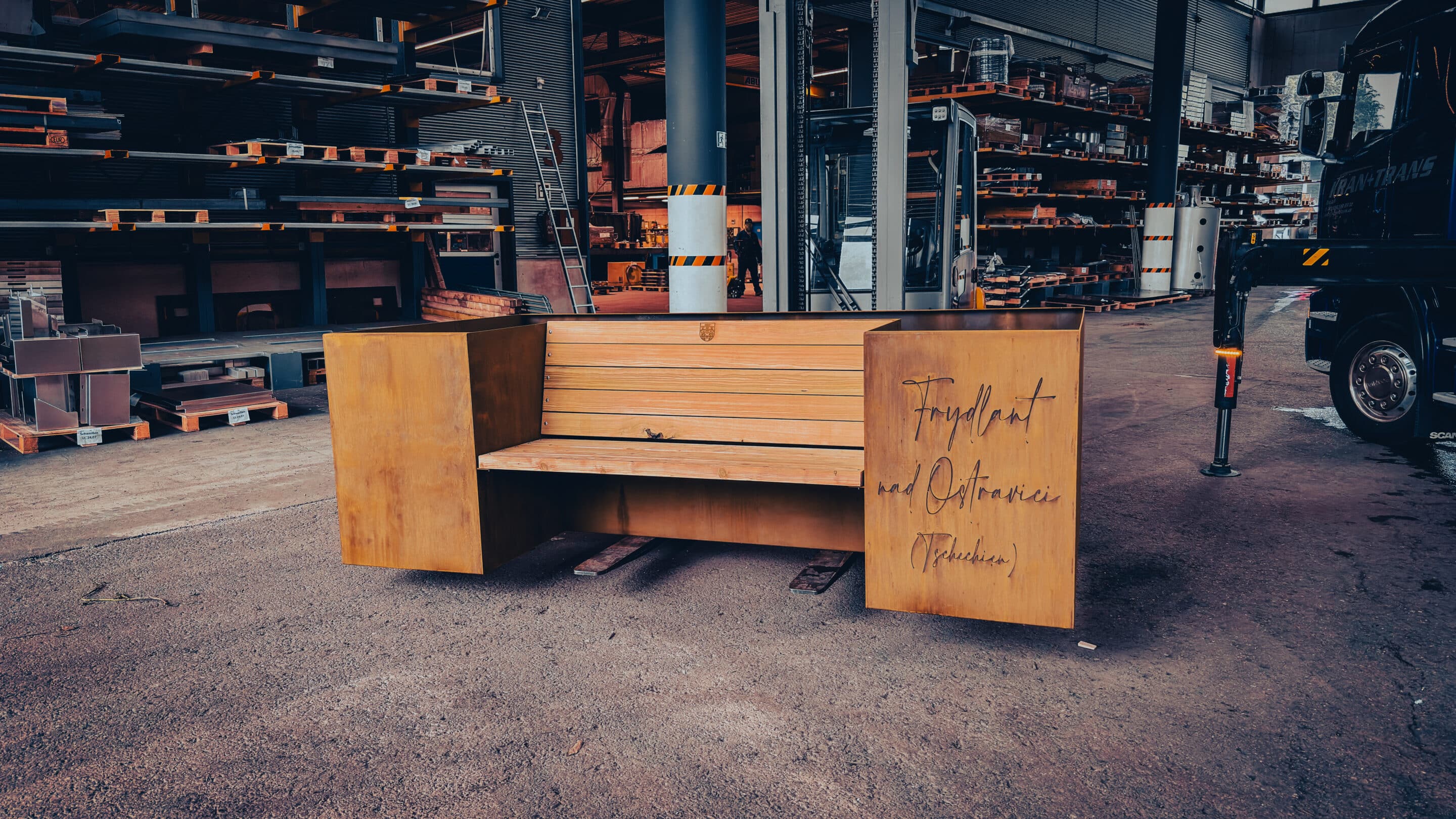 Die Sitzbank besteht aus österreichischem Lärchenholz. Das wohl langlebigste heimische Holz.